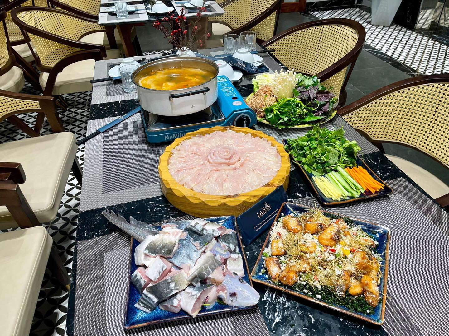 Nhà hàng La Bàn Vân Đồn: Chỉ mất khoảng 10-15 phút di chuyển từ đền Cửa Ông, nhà hàng La Bàn sở hữu không gian sang trọng với lối thiết kế tinh tế và đẹp mắt. Thực đơn của nhà hàng vô cùng đa dạng với các món ăn hải sản tươi ngon đậm chất thành phố biển như: Cua, ghẹ, sam, bề bề, ốc dát vàng,… bên cạnh đó còn có đầy đủ các món lẩu, các món chế biến từ ngan, vịt, dúi,… cho bạn lựa chọn.